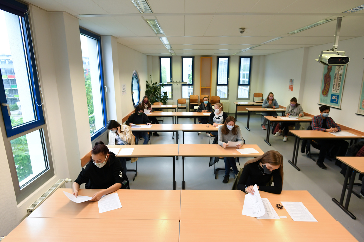 Students of a vocational school participate in class on the first school day after a five-week shutdown © REUTERS/Andreas Gebert