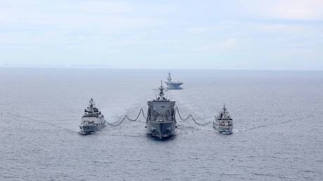 Together with the US, the four countries make up the Quadrilateral Security Dialogue, also known as the “Asian NATO” or simply the “Quad.” Though the informal alliance was largely dormant throughout the 2010s amid disputes between Canberra and New Delhi, the Trump administration has overseen a resurgence of the bloc, encouraging renewed cooperation and military drills in the Asia-Pacific with eyes on China. The alliance met last month for three days of naval exercises off the coast of India, showing off an arsenal of destroyers, frigates and other warships.