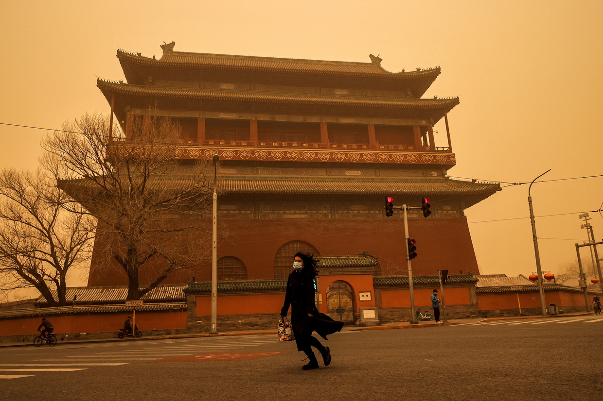 The apocalyptic-looking air conditions were caused by heavy winds that blew sand in from Inner Mongolia and other parts of northwest China. Beijing’s air quality index showed a reading of 999, a level described as “hazardous,” the worst possible tier. The index lists a reading of 50 or below as “good.”